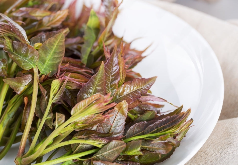 Unga skott och blad används flitigt i det kinesiska köket. Bladen har en spröd konsistens och smaken beskrivs som umami, nötig och lökaktig. En annan källa beskriver smaken av de tillagade bladen som en komplex måltid i sig självt - mer specifikt: som rostade bönor med toner av lök och peppar. "Även de som inte tycker om grönsaker skulle kunna tycka om Toona."