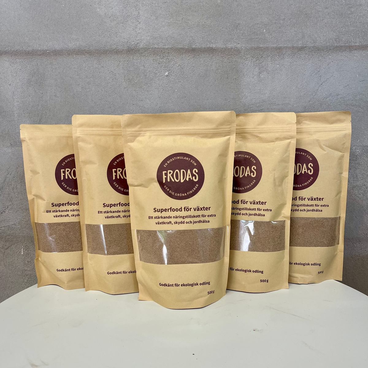 Frodas Gödsel är doftfritt, godkänt för ekologisk odling, och kan användas året runt – både i krukor, odlingslådor och i trädgård. Det hjälper växterna att motstå stress från kyla, torka och skadegörare.