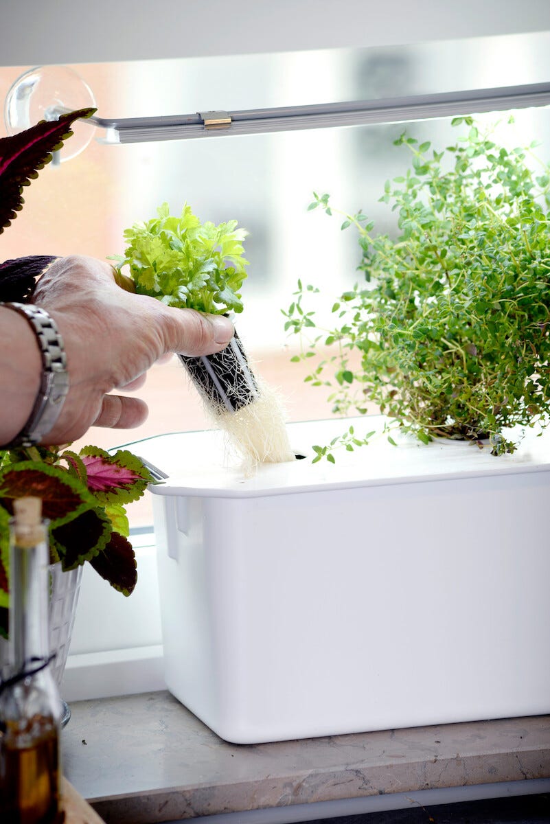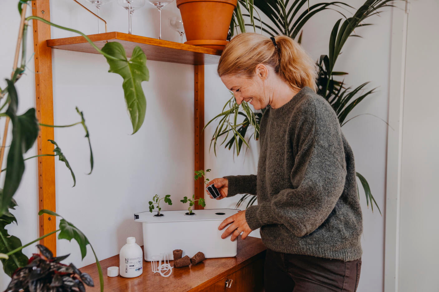 När du fyllt lådan med vatten sätter du de försådda pluggarna i locket och väntar. Efter bara några veckor kan du skörda din basilika, sallat eller vad du själv har valt att odla.