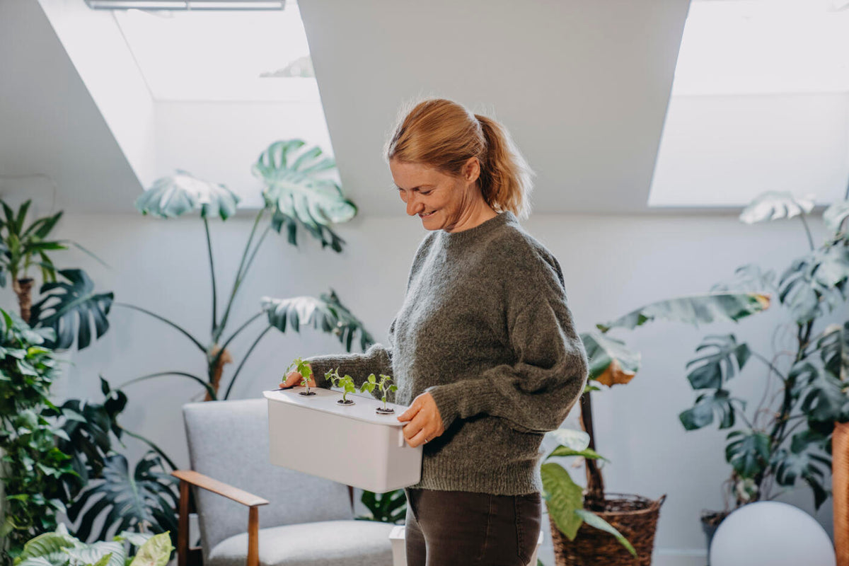 Odlingslådan har en tidlös design som passar lika bra i en liten lägenhet i storstaden som i ett stort hus på landet. Den kan placeras inomhus eller utomhus och den gör odlingen enkel. Men bäst av allt – du kommer igång på 10 minuter och odlingen sköter sig till största delen själv.