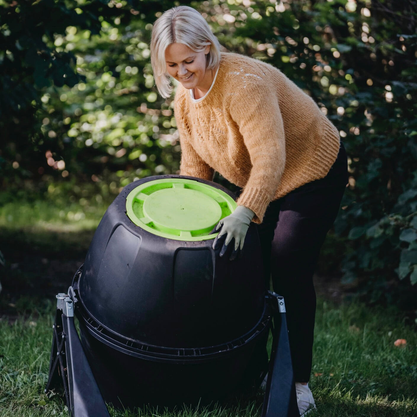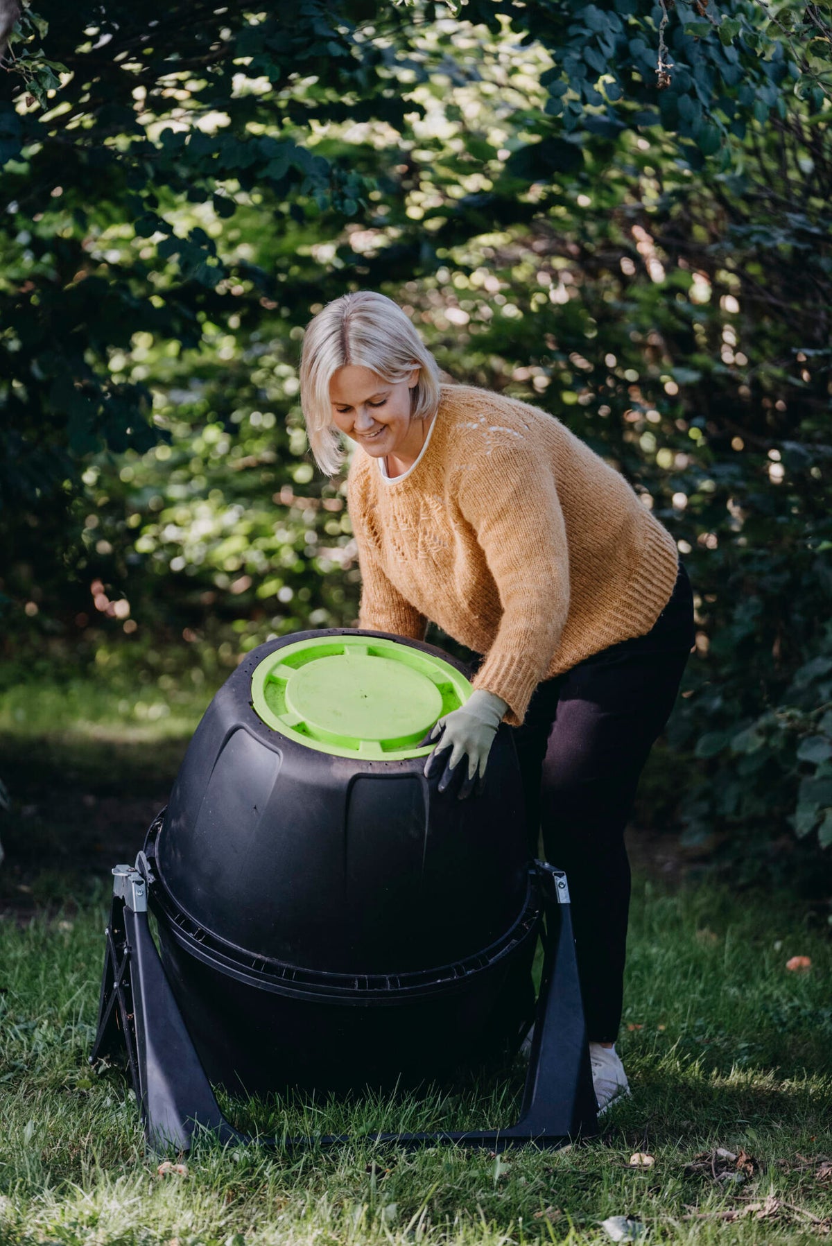 Effektiv kompostkula – ett praktiskt och dekorativt tillägg i trädgården. Fördelen med att ha en kompostkula är att den enkelt kan flyttas och placeras vart du vill - t ex nära köksentrén.